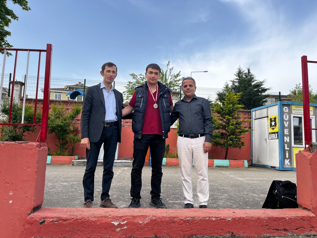 Şampiyon öğrencimize İstiklal Marşı töreninde madalyası Alan Şefi Levent GÜLSER tarafından takdim edildi.