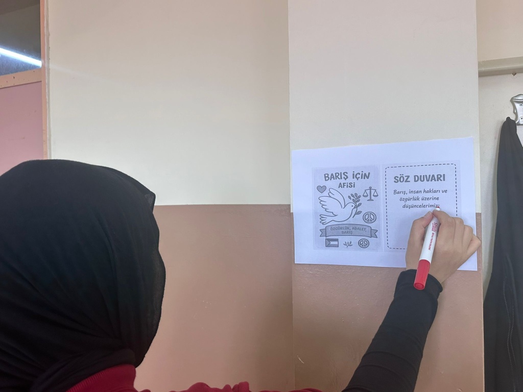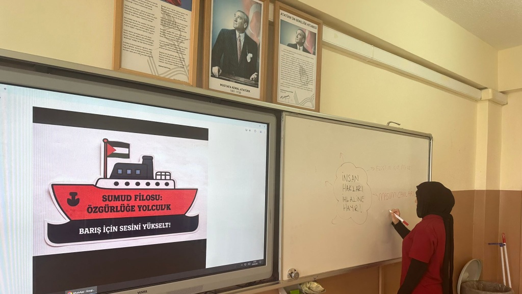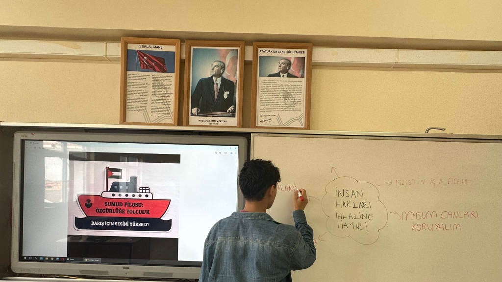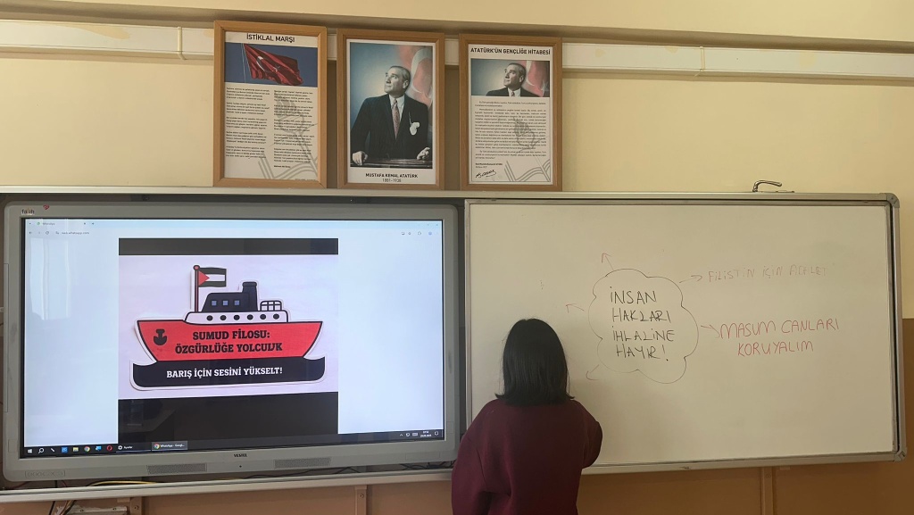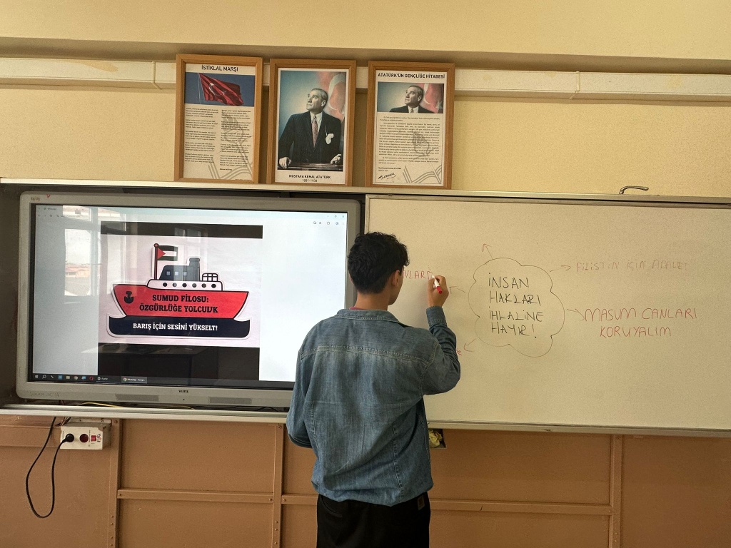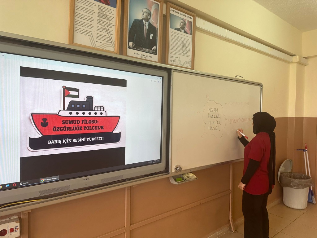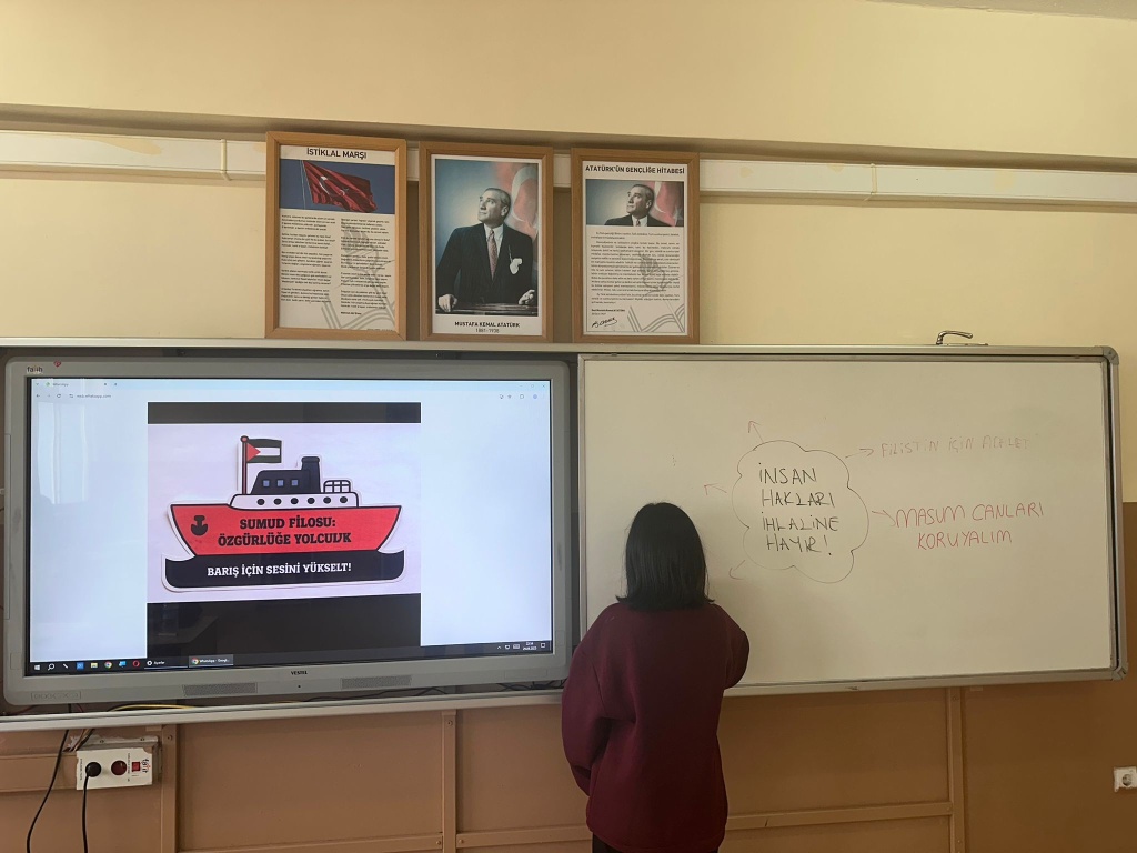 Filistin'deki insan hakları ihlallerinin sona erdirilmesine yönelik kararlı desteğimizi somut biçimde göstermek, öğrencilerimizin insan hakları ile demokratik duyarlılığını en üst düzeyde pekiştirmek ve Türkiye Yüzyılı Maarif Modeli'nin (TYMM) Erdem-Değer-Eylem yaklaşımı esas alınarak, öğrencilerin ulusal ve evrensel meseleler karşısında eleştirel düşünme becerisi ve sorumluluk bilinci geliştirmeleri amacıyla okulumuzda Filistin Farkındalık Etkinliği yapıldı. Etkinliğe katılan öğretmen ve öğrencilerimize teşekkür ederiz.